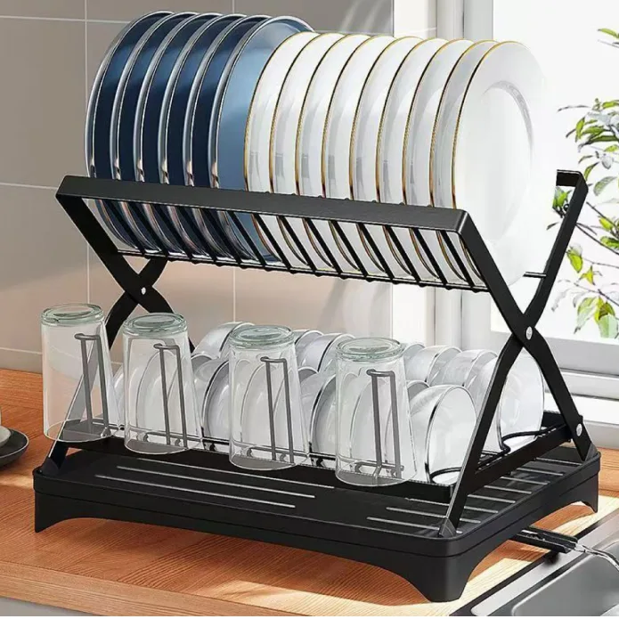 Scurgător de vase tip X, pliabil, cu fantă de scurgere a apei
