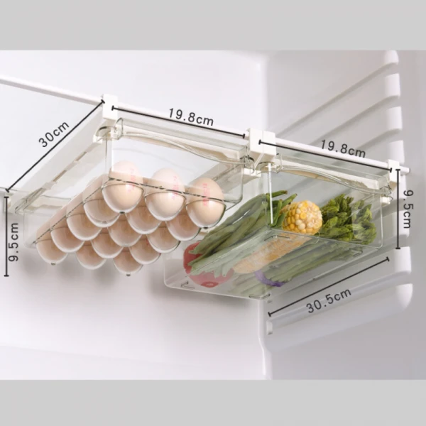 Set 2 cutii pentru depozitare 15 oua si legume cu suport, prindere la raftul frigiderului